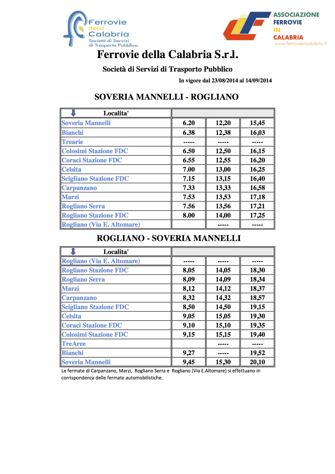 • Pubblicati sulla nostra pagina gli orari dei servizi ferroviari Ferrovie della Calabria previsti a partire dal prossimo 15.09.2014. Vedi qui